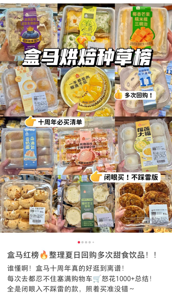 当前,盒马已经形成了自己的驱动系统,在各个垂直领域树立起了自己的地位。比方说在烘焙领域,盒马烘焙已然成为可以媲美独立烘焙品牌的业务线,不仅保持了基本销量的稳定增长,而且基本上每个季度都能出网红爆品。在小红书、微博等社交媒体翻翻,能看到不少对盒马甜品的测评和种草,像前段时间爆火的一半都是肉榴莲千层,现在依旧热度惊人。