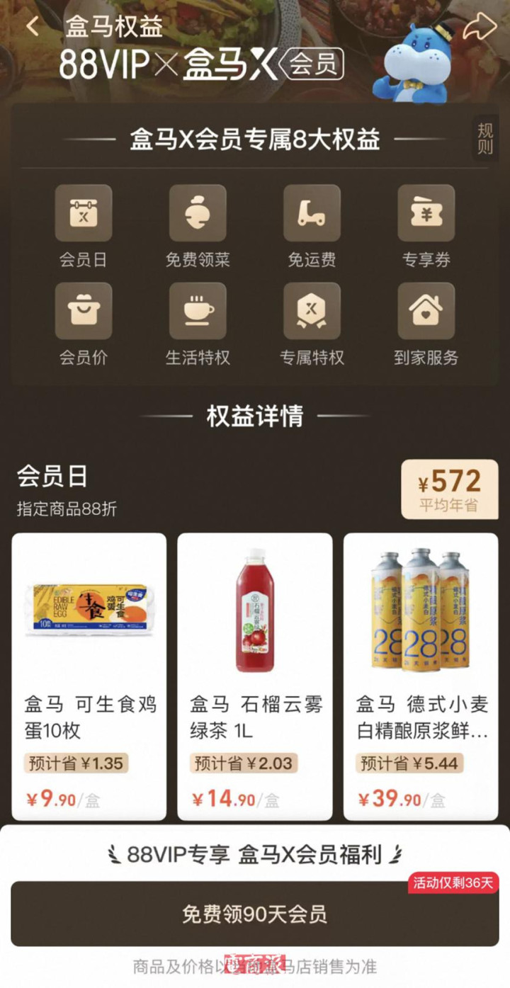 值得注意的是,盒马如今也在加速融入阿里大消费生态。此前盒马已经在淘宝闪购有了一级流量入口,最近又正式加入了淘宝88VIP体系,会员数三日增长翻倍。